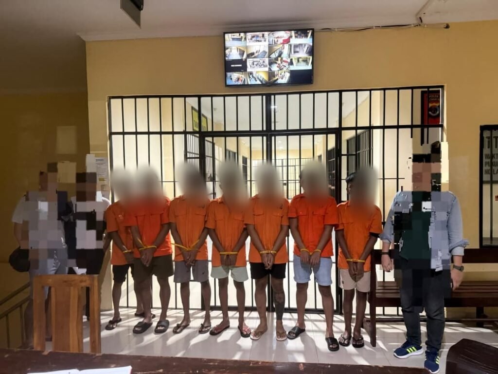 Ke 7 terduga pelaku yang berhasil ditangkap masing-masing berinisial, MAD alias Migel (21), FMN (22), JK (28), HVGYS (22), AKAP (22), APFM (22), WIT (23).